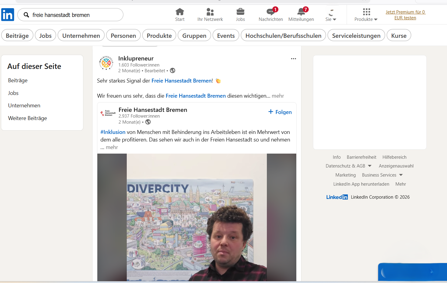 […] Weitere Hoffnung auf eine Lösung des Problems macht unter anderem das von der Bremer Bildungseinrichtung „Hilfswerft“ und der Wirtschafts- und Arbeitsenatorin gestartete Inklusionsprojekt „Inklupeneur“, bei dem Bremer Start-ups und Unternehmen nach Fachkräften mit Behinderung suchen. Zum Hintergrund: allein im Land Bremen gibt es 23.000 Menschen mit Schwerbehinderung, die teilweise in Jobs Arbeiten, für die sie überqualifiziert sind. Schon lange handelt es sich bei ihnen um keine Minderheit mehr. […]